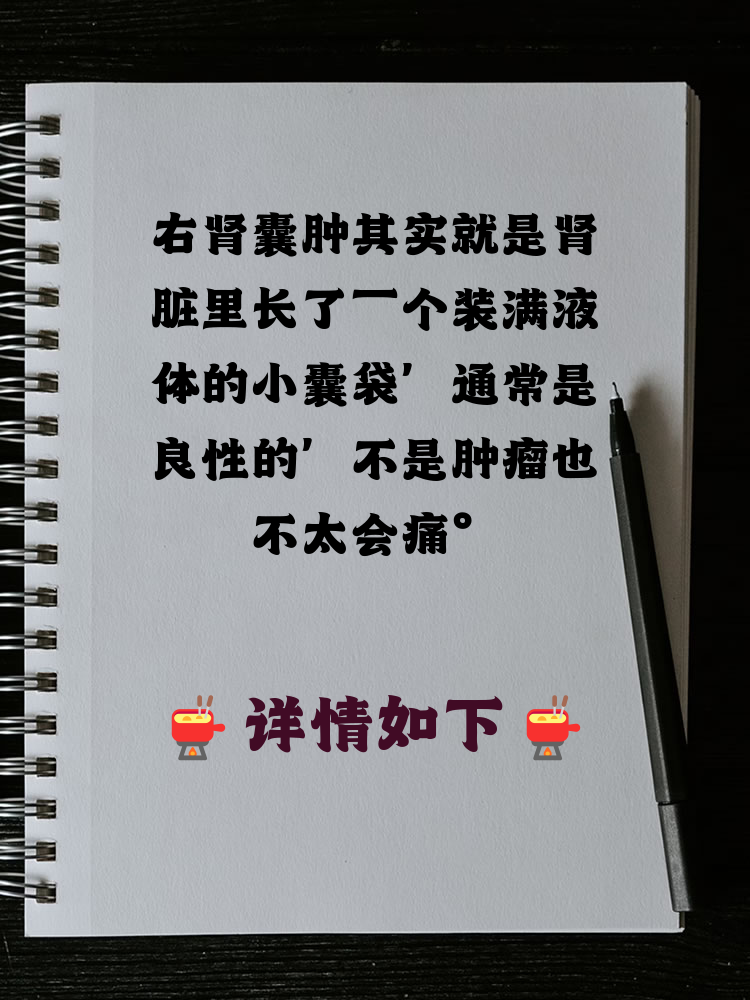 右肾囊肿通常是良性的,多数情况下不严重,但需根据囊肿大小和症状判断是否需要治疗病因方面,右肾囊肿的具体原因尚不明确,可能与年龄增长导致的肾脏结构和功能变化有关此外,遗传因素基因突变或家族性疾病也可能增加患病风险长期高血压糖尿病吸烟等不良生活习惯也可能与肾囊肿的发生有关症状。