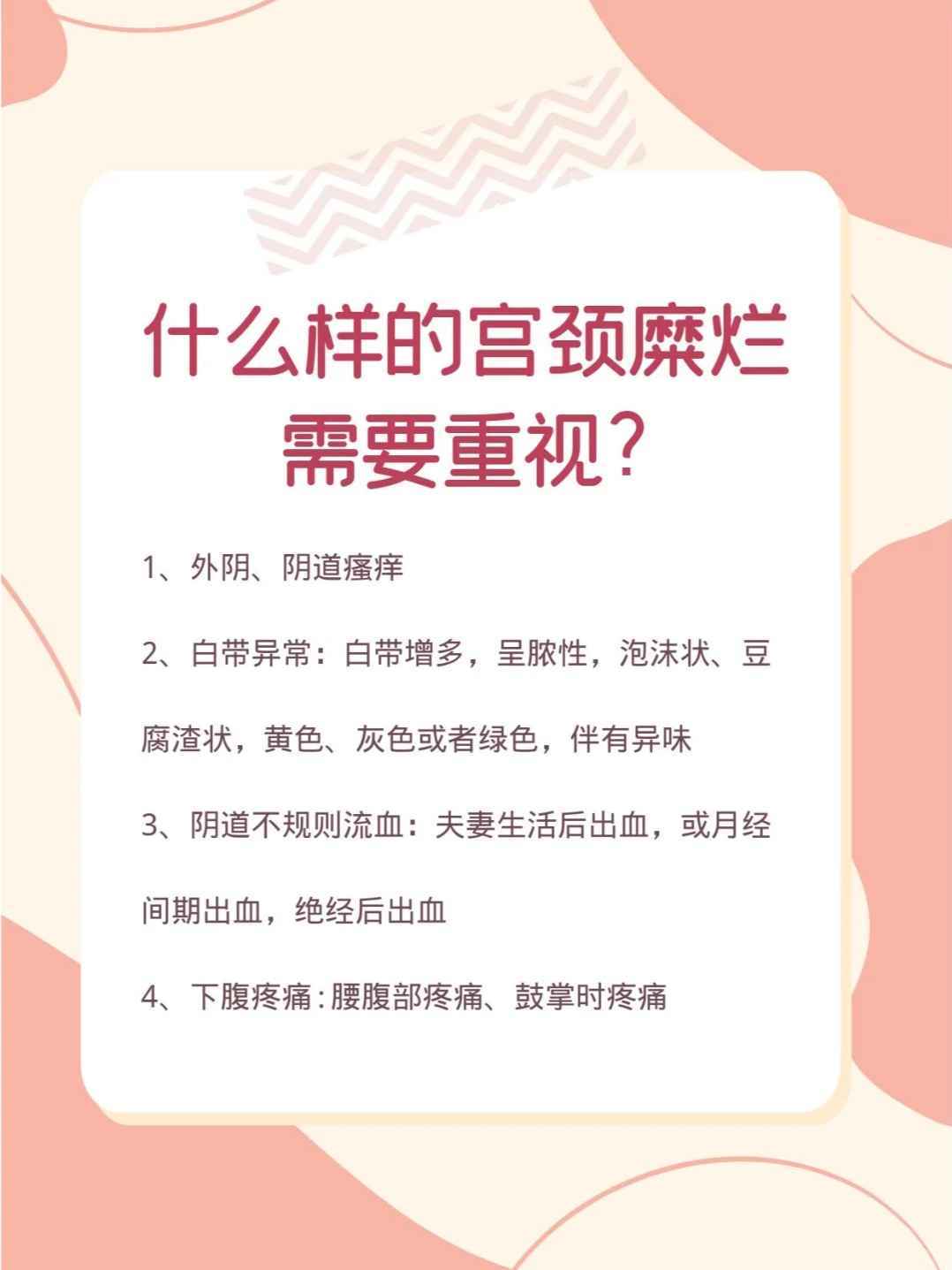 2、轻度宫颈糜烂通常不需要治疗,它是一种正常的生理现象宫颈柱状上皮异位是导致轻度宫颈糜烂呈现的主要原因,这与体内雌激素水平密切相关在青春期和生育期,女性体内雌激素水平较高,会促使宫颈管内的柱状上皮向外延伸,使得宫颈外观呈现出类似糜烂的改变这种改变属于正常的生理变化,一般不会引起任何不;1宫颈糜烂到底是什么宫颈糜烂在医学病理中的概念是“宫颈上皮的脱落溃疡”宫颈糜烂是宫颈炎最常见的表现,主要分为轻度中度重度其中重度糜烂的表现是乳头状增生型的糜烂,轻度糜烂则是细小轻微的浅表性颗粒型糜烂宫颈糜烂不是一种独立的疾病,而是慢性宫颈炎的一种表现形式,是由人乳头;宫颈糜烂可以说是女性常遇到的一种妇科疾病,妇科疾病一直是女性们最为困扰的问题,生活中,也有很多女性对宫颈糜烂不是很了解,往往存在过度治疗的情况,甚至很多女性对宫颈糜烂存在害怕的心理,担心这种疾病对自己的健康带来影响,那么,到底宫颈糜烂需不需要治疗呢宫颈糜烂到底需不需要治疗关于宫颈糜烂;不是不是不是我知道很多小伙伴听到这个名字超级害怕,不怕不怕,让我们先从定义上理解一下2008 年起,本科医学专业教材妇产科学中取消“宫颈糜烂”这一名称,用“宫颈柱状上皮异位”来取代宫颈糜烂宫颈柱状上皮异位宫颈柱状上皮异位为一种生理现象,主要由于青春期后,在雌激素作用下;不用管它,忽悠人的“病”所谓的宫颈糜烂,实际上是柱状上皮外翻宫颈糜烂曾经是一个困扰了很多女性的一个疾病去做体检,几乎是十有八九会被诊断为宫颈糜烂2008年,本科生的第7版妇产科学教材取消“宫颈糜烂”病名,以“宫颈柱状上皮异位”生理现象取代 宫颈糜烂,说到底,实际上是过去;宫颈糜烂并不等同于疾病,多数情况下属于生理性改变具体分析如下生理性改变的本质宫颈糜烂的“糜烂”外观并非真正的组织破损,而是由于雌激素水平升高如青春期妊娠期或口服避孕药期间,导致宫颈管内的柱状上皮细胞向外移行至宫颈阴道部,覆盖原本的鳞状上皮这种移行使宫颈表面呈现红色颗粒状,类。