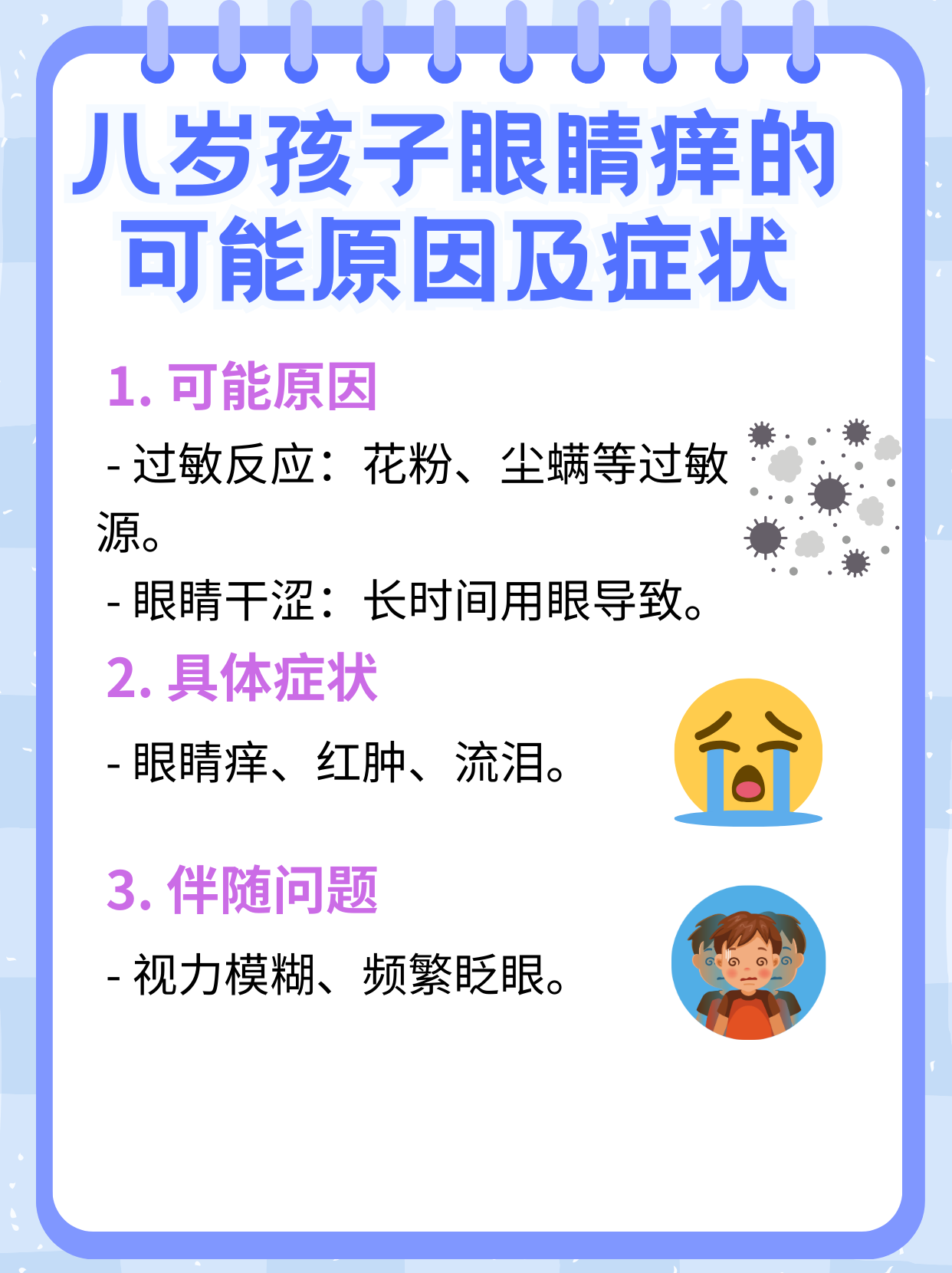 眼睛眼角干涩发痒可能由以下因素引起1用眼过度长时间使用电子设备如电脑手机会减少眨眼频率,导致泪液蒸发过快,引发干涩和瘙痒建议每工作2030分钟休息5分钟,通过远眺或闭眼放松缓解症状2环境因素干燥空气烟雾粉尘等刺激物会破坏眼表泪膜稳定性,诱发干涩和瘙痒保持环境湿度在40%。