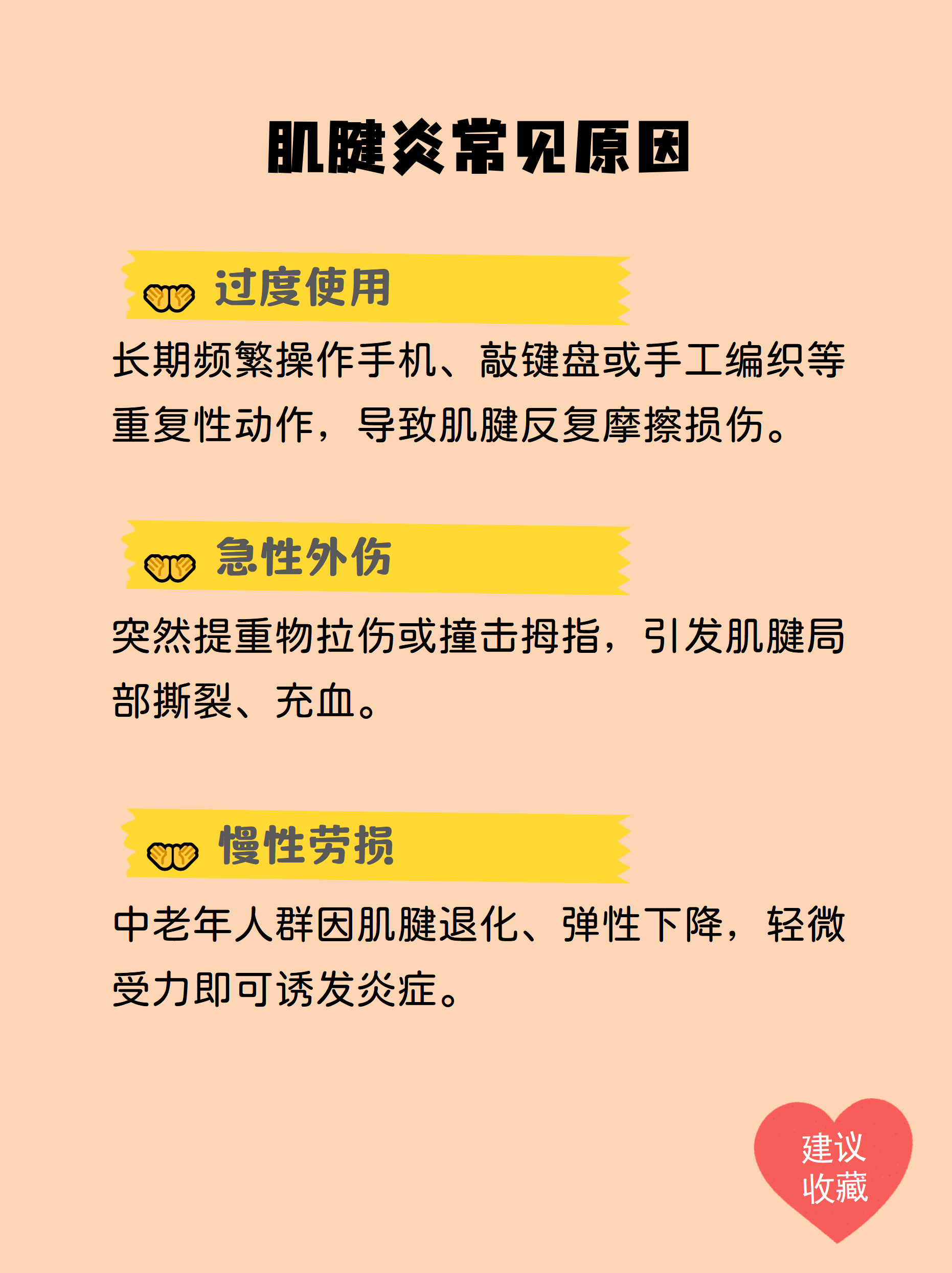 需注意上述症状可能单独或组合出现,严重程度因人而异若怀疑患有肌腱炎,建议及时就医,通过专业检查如触诊超声或MRI确诊早期干预可有效缓解症状,防止慢性损伤治疗方法包括休息冰敷热敷物理治疗非甾体抗炎药,严重者需注射治疗或手术预防措施包括循序渐进增加运动量保持正确姿势强化肌肉力量注意保暖及避免过度使用关节。
