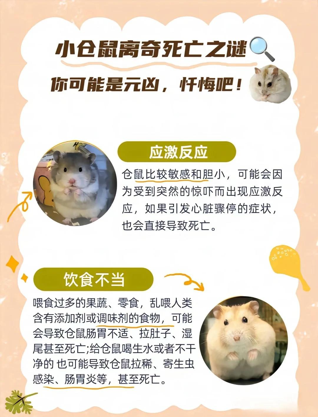 仓鼠咬人后三天死亡,这一说法并不准确,但仓鼠若咬人后三天内死亡,确实可能带有狂犬病毒或鼠疫以下是相关分析仓鼠咬人后三天死亡的情况仓鼠咬人后三天内死亡,虽然不能直接断定其死因与被咬有关,但这样的情况下,仓鼠确实有可能携带某些致命病毒,如狂犬病毒或鼠疫这些病毒在仓鼠体内潜伏,可能因。