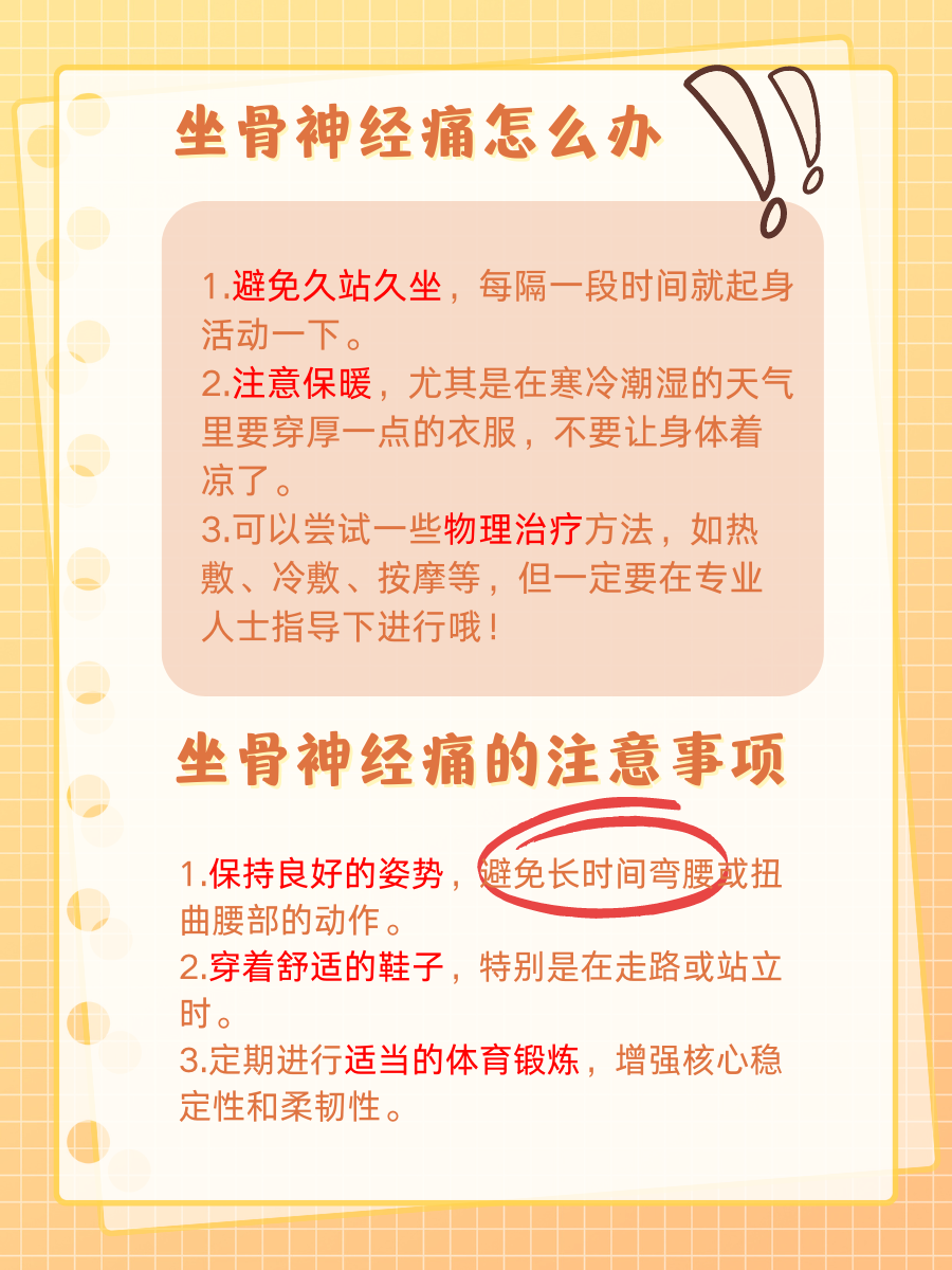 1坐骨神经痛是可以正坐举腿运动,坐着时两条腿中间是可以放一本厚重的书,用力夹住,双手用力抓住凳子,这样用力把双腿抬起,再放下,这样运动,慢慢坐骨神经痛疾病能缓解2坐骨神经痛是平坐着,用脚跟着地,脚尖翘起来,这样把双手放到大腿上,直接向前弯腰,双手弯向足部,两手同时推向足部初练。