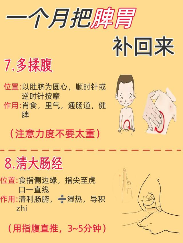 • 清大肠经:用指腹从娃食指指尖直推到虎口,每次3-5分钟,能清利肠腑、祛湿热,缓解积食。