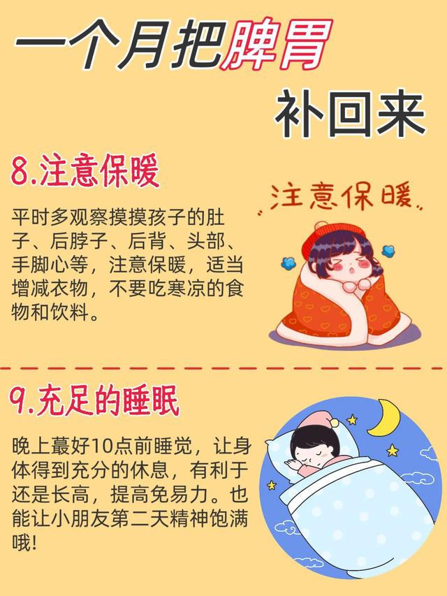 3. 10点前睡,养脾胃还长个:晚上尽量让娃10点前入睡,充足睡眠能让身体彻底休息,不仅养脾胃,还能帮娃长个子、提免疫力,第二天醒来活力满满。