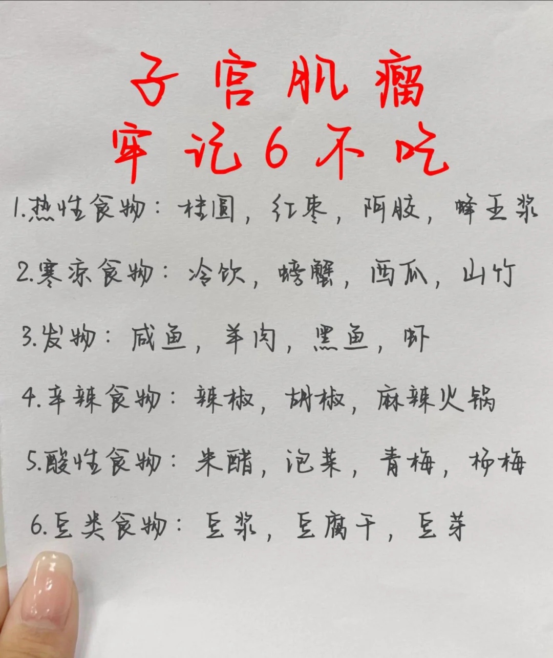 5、子宫肌瘤患者需严格遵循以下饮食禁忌,以促进疾病恢复并降低复发风险1 严格避免辛辣刺激性食物子宫肌瘤患者需彻底戒除辣椒麻椒花椒等强刺激调味品,此类食物可能通过促进血液循环加重盆腔充血,间接刺激肌瘤生长同时需控制生姜生蒜洋葱等温热性食材的摄入量,因其可能引发体内热象积聚,不利于病情。