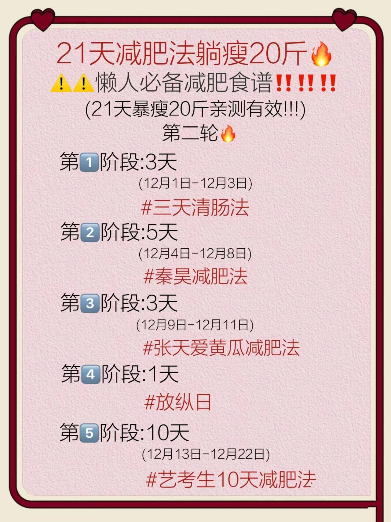21天减肥法在短期内通常会有较为明显的体重下降,但存在健康风险且易反弹,不建议作为常规减肥方法体重下降效果该方法通过三个阶段严格控制热量摄入实现快速减重第一阶段断食期和第二阶段蔬果期因热量摄入大幅减少,身体会优先消耗储存的糖原和脂肪,同时排出大量水分,导致体重快速下降通常21。
