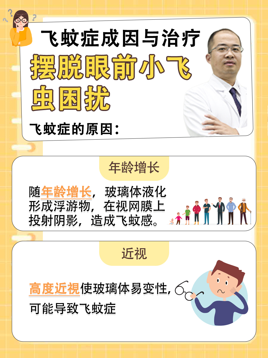 眼睛飞蚊症是可以治好的以下是关于飞蚊症治疗的详细解答1 飞蚊症的性质 飞蚊症是眼科的常见疾病,多见于中老年人及高度近视人群,主要由玻璃体液化导致 从症状上看,飞蚊症仅表现为眼前的飞蚊或漂浮物,不会对视力造成影响,属于生理现象2 飞蚊症的治疗原则 一般情况下,飞蚊症不需要特殊处理。