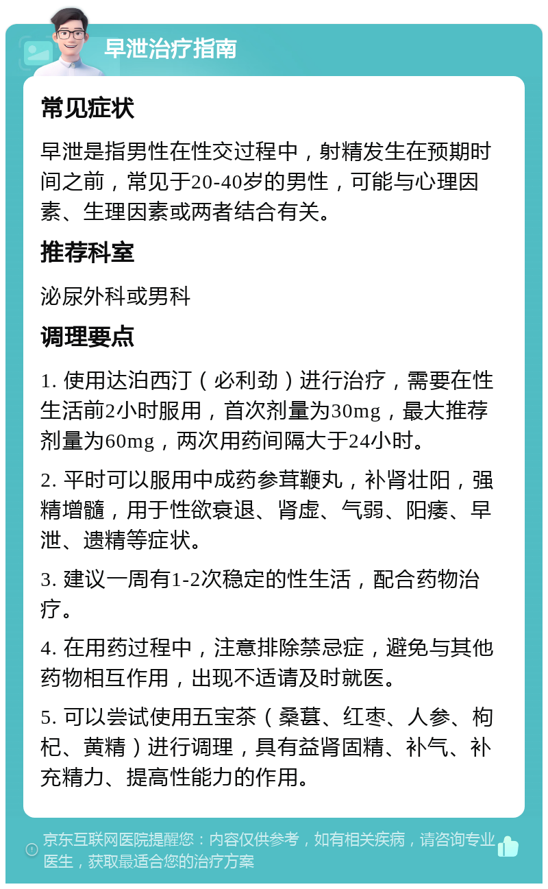 一功能性早泄可能自愈当早泄由非器质性因素引发时,通过调整生活方式和心理状态,症状可能自行缓解具体包括1改善生活习惯规律作息,避免熬夜和过度劳累减少频繁手淫,控制性刺激频率2调整饮食结构增加富含锌维生素E的食物摄入,如坚果海鲜,避免辛辣刺激饮食3心理干预通过放松训练正念冥想减轻焦虑,与。