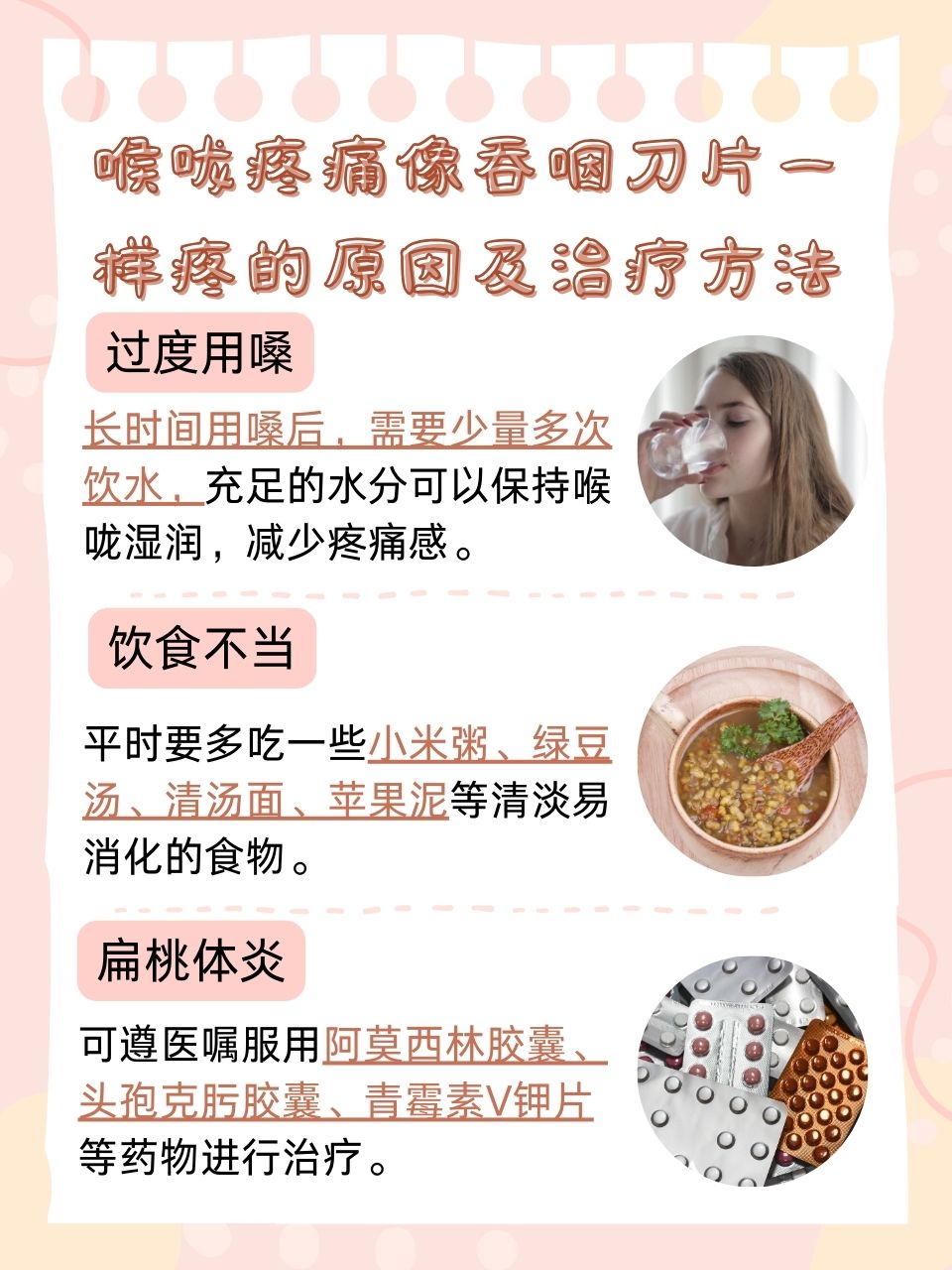嗓子痛需根据病因采取针对性处理措施,具体方法如下一针对急性咽喉炎症的缓解措施若为轻度咽喉部急性炎症引发的疼痛,可通过饮食调整改善症状需严格禁烟禁酒,避免刺激咽喉黏膜每日保证15002000ml饮水量,稀释分泌物并缓解干燥感多摄入富含维生素C的果蔬如柑橘猕猴桃及高水分食物如梨蜂蜜。