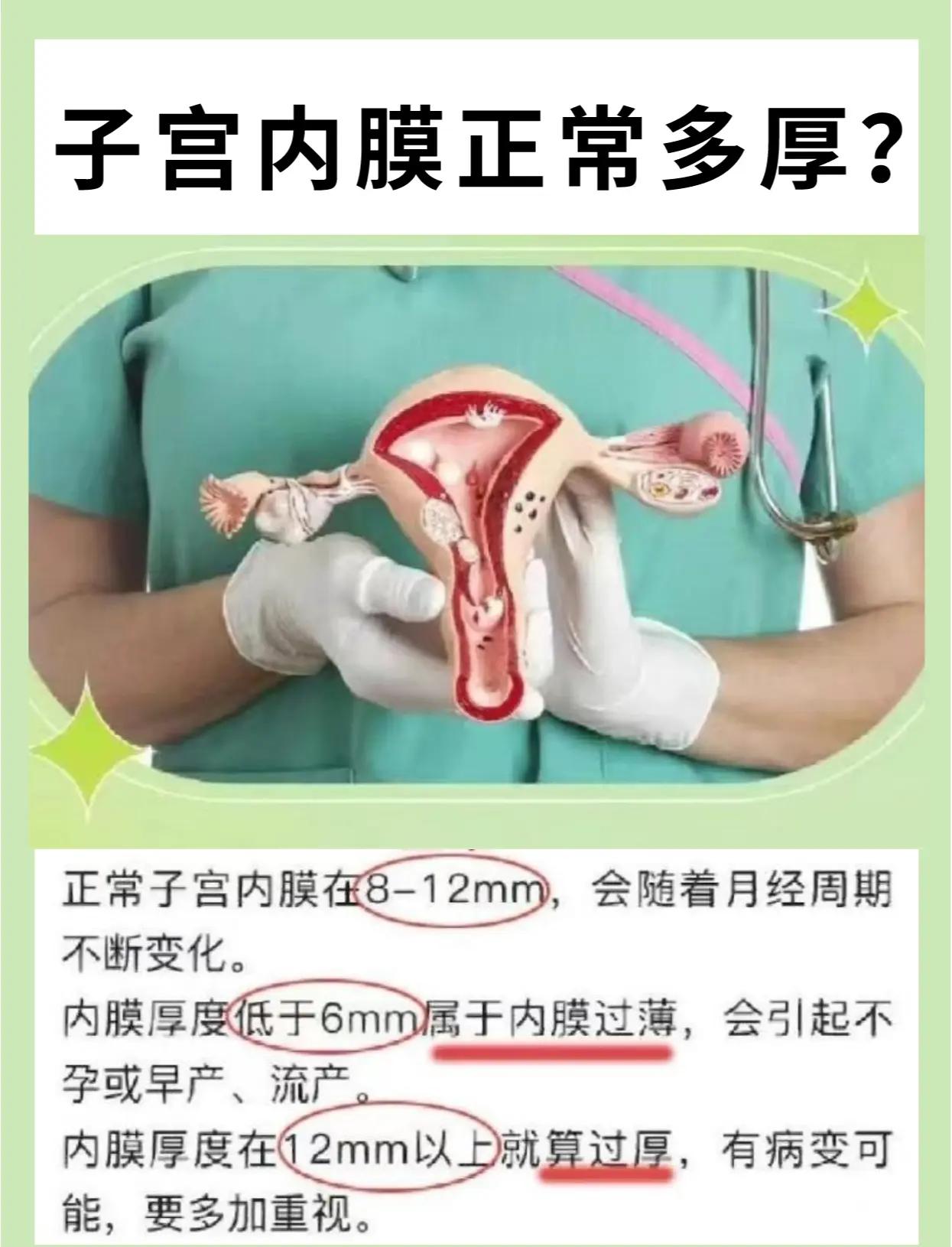 如果是在增生期或月经期,这一厚度则可能偏厚持续增厚如果育龄期女性首次发现子宫内膜厚度为12mm,建议在月经干净后再次复查如果持续增厚,可能需要进一步检查以排除子宫内膜增生症子宫内膜息肉子宫粘膜下肌瘤等疾病绝经期女性正常厚度范围绝经期女性子宫内膜厚度应小于45mm因此,12mm的子宫。