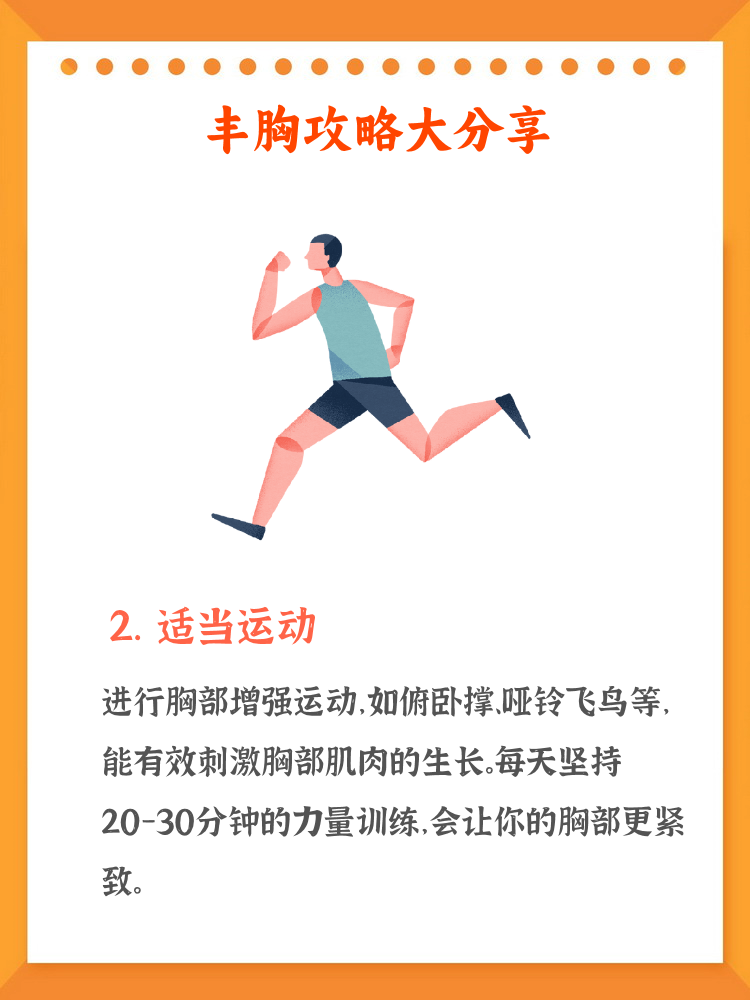 1 选择适当尺寸的胸罩,既不太紧也不太松,以便在支撑胸部的同事避免过度压迫,帮助保持胸型2 穿着薄且结实的内衣,这样的内衣可以固定胸部而不易引起晃动,同时不会增加胸部的厚度3 选择深色系的内外衣,尤其是黑色,以减少对胸部的视觉关注选择竖条纹衣物也有助于转移对胸部的注意力4;一调整内衣尺码 选择合适尺码穿戴合适的内衣,避免过紧或过松,可以更好地塑造胸部形状,减少胸部的突出感购买内衣时建议咨询专业人士,确保选择正确的尺码 简约款式选择款式简约的内衣,也能在一定程度上减少胸部的突出感二调整日常姿势 保持正确坐姿和站姿长时间保持挺胸收腹的正确坐姿和站;首先告诉你俯卧撑对人体的胸肌 上肢 肩部 腹肌都有很强的刺激作用,绝对是个身体训练的好项目此外更高兴的看到你对锻炼科学的重视给你一个计划把俯卧撑分4组,每组15个,每组之间间隔1分钟,做动作时要就慢下慢起,使肌肉永远保持紧张状态在按我的要求完成后如果你还能够继续做那么请你把每组。