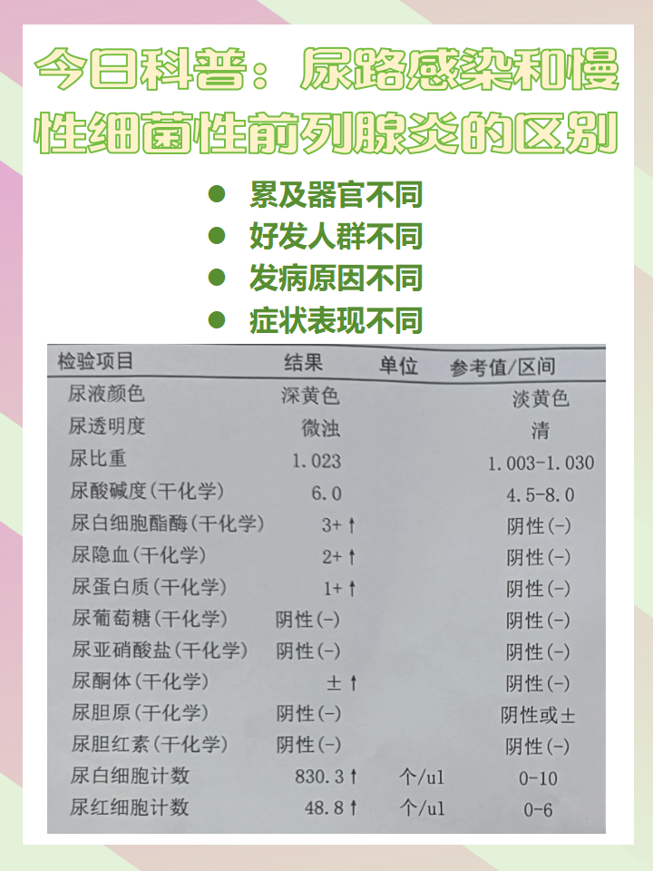 细菌性慢性前列腺炎的症状多样化,具体表现如下一排尿异常尿频尿急尿痛是典型症状,患者常感到尿意频繁但尿量较少,排尿时伴有疼痛或灼热感部分患者会出现尿后滴沥尿不尽感,可能与前列腺充血或炎症刺激尿道有关二疼痛症状疼痛多发生于下腹部腰骶部会阴部耻骨上区及腹股沟区,表现。