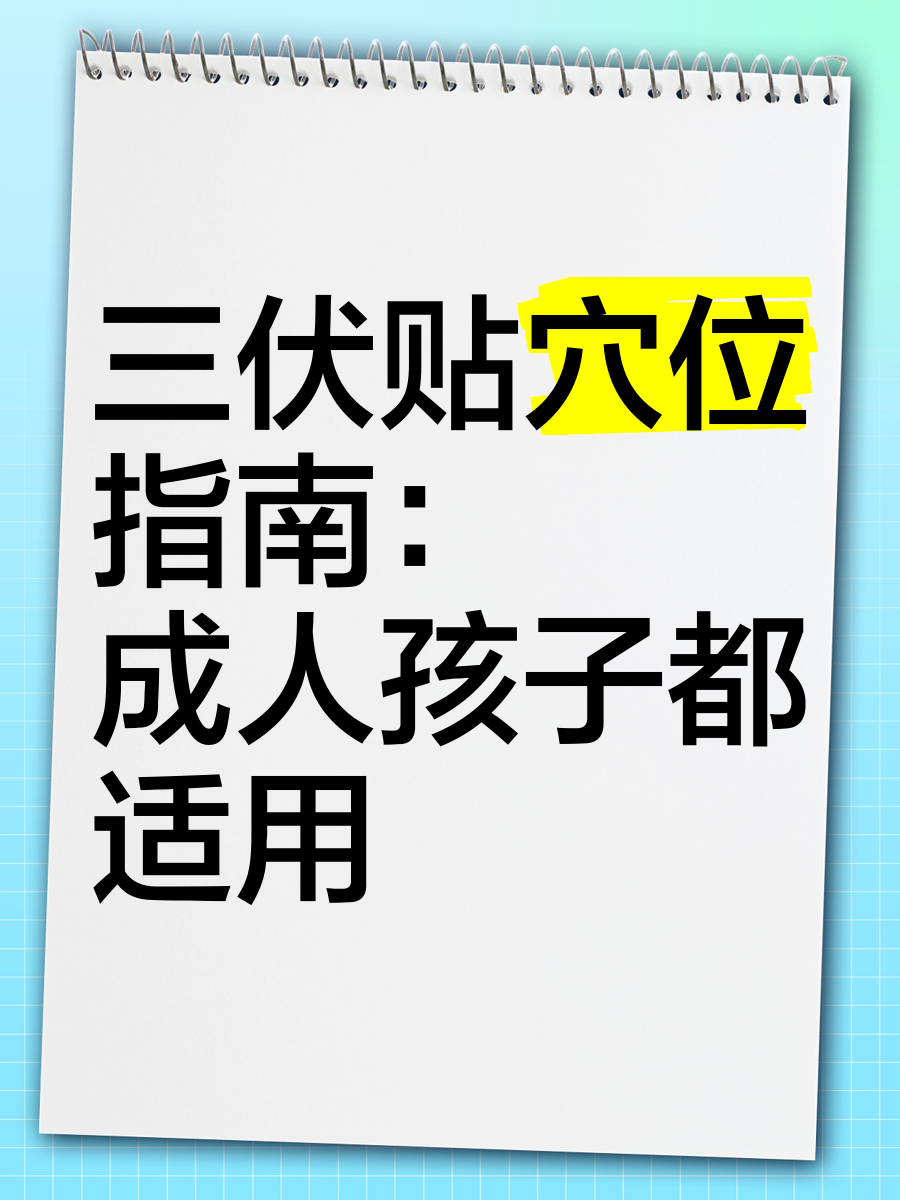 三伏贴穴位的位置根据不同的治疗目的有所不同治疗咳喘疾病大椎位于第七颈椎棘突下方凹陷处双侧肺俞在第三胸椎棘突下,旁开15寸的位置天突位于胸骨上窝正中肺气肿喘重者配穴肾俞定喘治疗风寒湿痹大椎以压痛点或病变局部或其他反应点为特征肾俞脾俞脾俞在第十一胸椎。