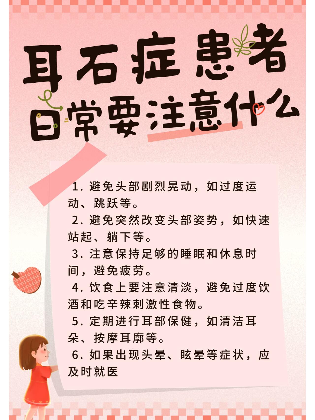 4心理治疗 指出本病为良性过程,无严重的后遗症,以接触患者的精神负担5体位疗法 指导病人闭眼,从坐位到侧卧位,当眩晕消失后坐起,30s后再向另一侧侧卧,两侧交替进行直至症状消失为止,每3h进行一次,通常710g症状可消失上面就是为大家介绍的耳石症快速自愈方法相关内容,此外还介绍了耳石症。