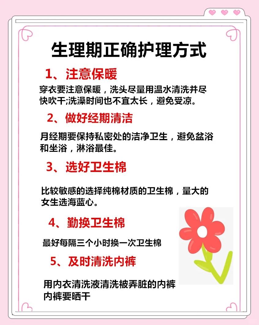 1、经期保暖至关重要,避免寒冷刺激,以免降低体内血液循环速度,导致经血排出不畅和小腹疼痛避免同房经期子宫内膜脱落,表面形成创伤,此时同房容易导致细菌逆行感染,引发子宫炎症正确用药经期应避免使用活血化瘀的药物,以免加大经期出血量遵循以上注意事项,有助于女性顺利度过月经期,减少不适和潜在的;初次来月经,需要注意以下事项一保持良好的卫生习惯月经期间,阴道口处于开放状态,需勤换卫生巾建议每24小时更换一次,避免细菌滋生每日用温水清洗外阴,保持清洁干燥,禁止盆浴,以防污水进入阴道引发感染二注意保暖,避免着凉尤其需加强腹部保暖,避免食用生冷食物如冷饮生鱼片或接触;月经期注意事项和禁忌如下一日常护理注意事项月经期女性体质较弱,需保证充足休息,避免过度劳累和熬夜睡眠时间建议每日78小时,以维持内分泌稳定注意保暖,尤其是腹部和腰部,避免受寒引发痛经或经血排出不畅可适当使用热水袋热敷下腹部,促进血液循环二饮食调整与禁忌饮食需以温热易消化为。