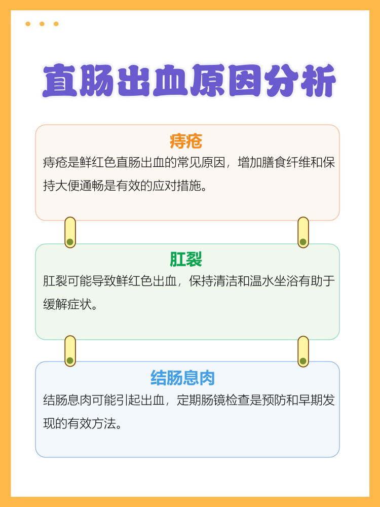 7、便秘出血可能的原因有以下两种肛门疾病痔疮或肛裂如果便后滴血,且大便呈鲜红色,很可能是痔疮或肛裂导致的出血这两种疾病在便秘时由于用力排便,可能导致肛门部位血管破裂或裂口扩大,从而引起出血肠道疾病结肠肿瘤结肠息肉或结肠溃疡如果出血与粪便混合,且大便呈暗红色,或者伴有腹痛体重。