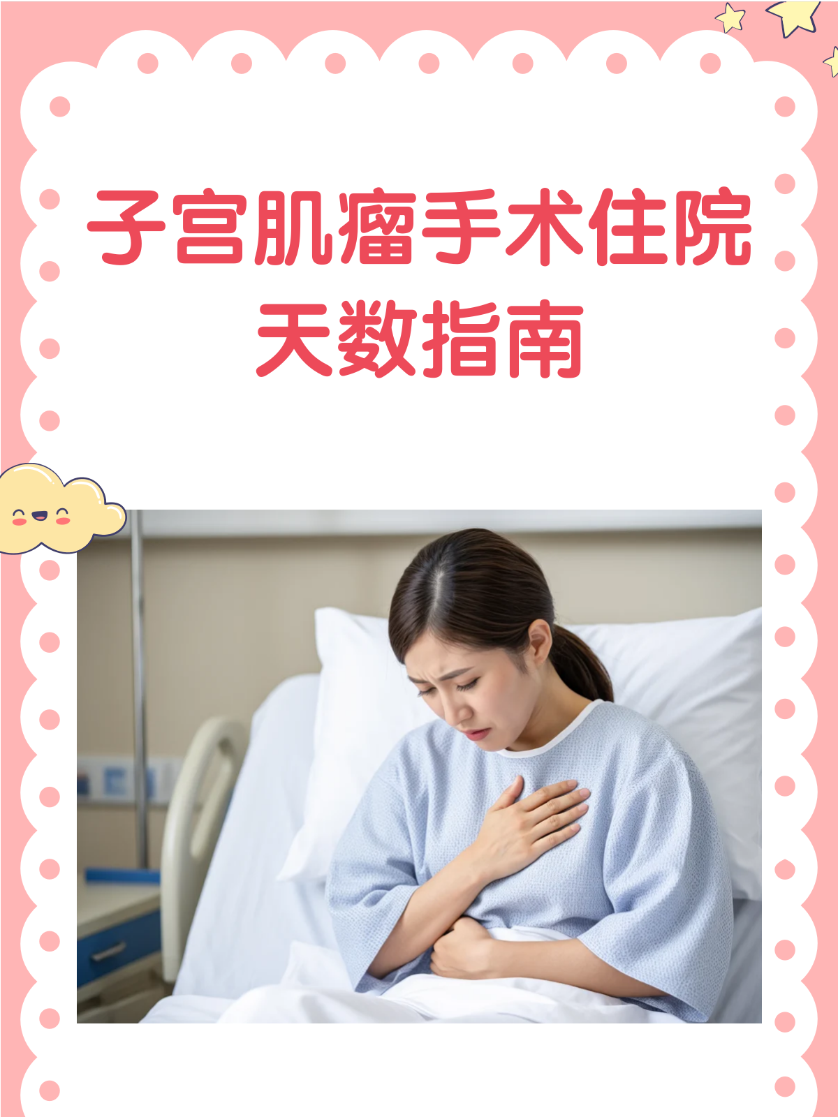 6、子宫肌瘤手术后的住院时间需根据手术方式及患者恢复情况综合判断1 腹腔镜下肌瘤剥除术若患者选择腹腔镜微创手术如子宫肌瘤剥除术,且术中未出现严重并发症,术后恢复顺利,通常住院时间为3至5天此手术创伤较小,恢复较快,患者术后需观察伤口愈合体温出血量等指标,待基本生命体征稳定能。